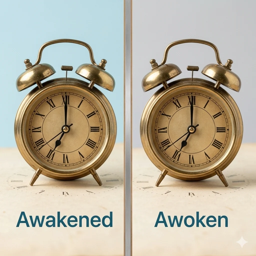 | Past Participle | Awakened / Awoken | Awoken / Awakened | “I have awoken.” or “I have awakened.” |